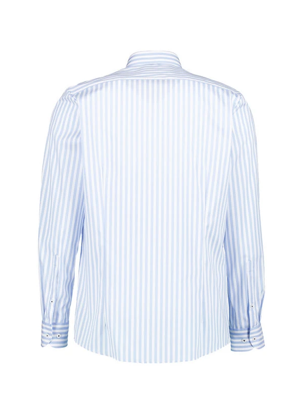 Die feinen hellblau-weißen Streifen verleihen diesem Body Fit Hemd eine frische, professionelle Ausstrahlung. Der hochwertige Baumwoll-Stretch schmiegt sich angenehm an den Körper und bietet durch den Elasthan-Anteil optimale Bewegungsfreiheit – ideal für lange Bürotage. Die bügelleichte Qualität macht das Hemd zum praktischen Begleiter für Geschäftsreisen und den täglichen Einsatz. Französische Knopfleiste und Kentkragen unterstreichen den eleganten Charakter, während die weitenverstellbare Sportmanschette für individuellen Tragekomfort sorgt.