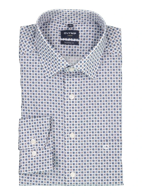 Die marineblaue Grundfarbe erhält durch eine feine Musterung zusätzliche Tiefe und wirkt dabei zurückhaltend elegant. Das bügelfreie Baumwollgewebe fühlt sich atmungsaktiv an und behält seine glatte Optik auch nach einem langen Arbeitstag. Für Business und gehobene Anlässe bietet der moderne Schnitt mit italienischer Knopfleiste stilvolle Seriosität. Der extra lange Arm mit weitenverstellbarer Kombimanschette und die praktische Brusttasche runden die durchdachte Ausstattung ab. OLYMP verbindet seit 1951 schwäbische Präzision mit innovativer Hemdenkunst – die Luxor-Linie steht dabei für höchste Bügelfreiheit und GREEN Choice für nachhaltige Verantwortung.