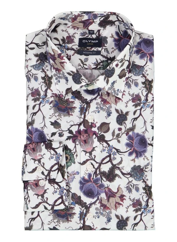 Das dezente florale Muster auf weißem Grund verleiht diesem Hemd eine subtile Eleganz, die sowohl im Büro als auch bei besonderen Anlässen überzeugt. Die reine Baumwolle fühlt sich angenehm auf der Haut an, ist atmungsaktiv und behält auch nach vielen Wäschen ihre Form. Dank der bügelfreien Ausrüstung bleibt das Hemd den ganzen Tag über glatt und gepflegt – ideal für einen professionellen Auftritt ohne zusätzlichen Aufwand. Der klassische Kentkragen mit italienischer Knopfleiste und die weitenverstellbare Kombimanschette unterstreichen die durchdachte Verarbeitung.