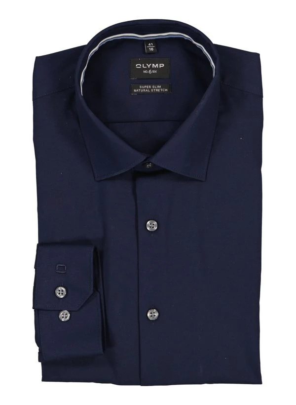Das tiefe Tintenblau verleiht diesem Hemd eine elegante Ausstrahlung, während die italienische Knopfleiste für raffinierte Details sorgt. Die reine Baumwolle fühlt sich atmungsaktiv auf der Haut an und bleibt dank natürlich dehnbarer Garne den ganzen Tag über knitterfrei. Im super slim Schnitt betont es eine moderne Silhouette und passt perfekt zum Business-Alltag. Der Kentkragen und die weitenverstellbare Sportmanschette runden das durchdachte Design ab. OLYMP verbindet seit 1951 schwäbische Präzision mit zeitgemäßem Stil – das Familienunternehmen steht für Hemden, die Funktionalität und Eleganz vereinen.