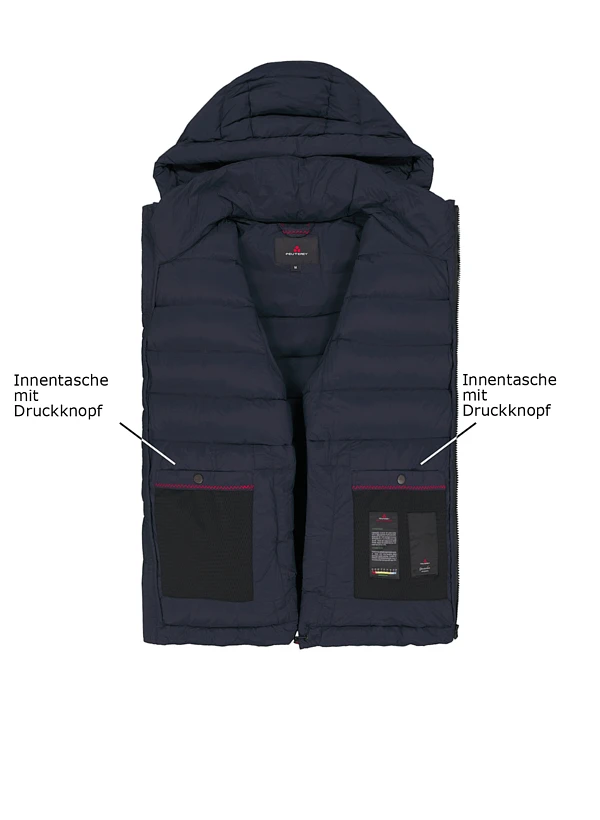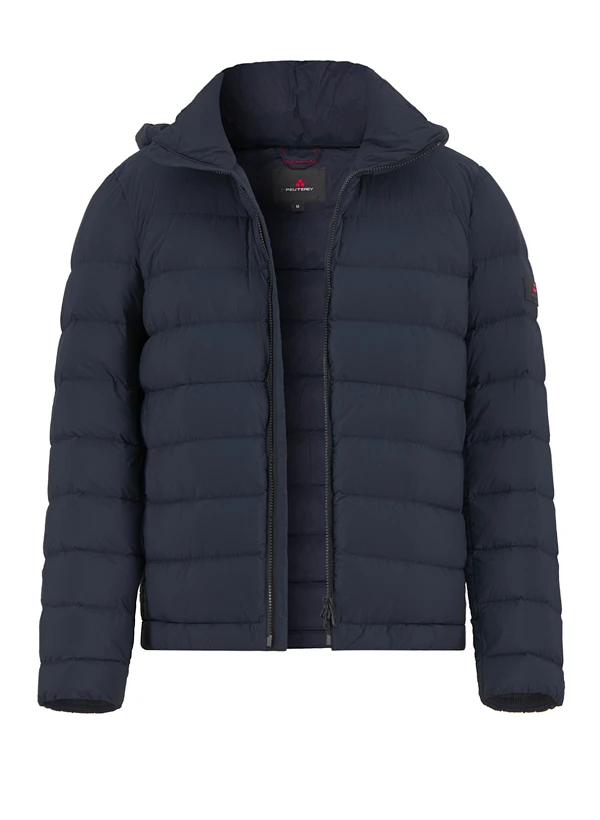 Die matte schwarze Mikrofaser zeigt sich dezent und vielseitig, während die abnehmbare Kapuze mit Kordelzug flexiblen Wetterschutz bietet. Das wasserabweisende Material fühlt sich leicht an und die hochwertige Daunen-Federn-Füllung sorgt für angenehme Wärme ohne aufzutragen. Die durchdachte Konstruktion mit Zwei-Wege-Reißverschluss und elastischen Ärmelbündchen macht die Jacke zum verlässlichen Begleiter für urbane Herbst- und Wintertage. Seitentaschen mit Reißverschluss und innenliegende Steckfächer bieten praktischen Stauraum für Smartphone und Geldbörse. Peuterey verbindet toskanische Textiltradition mit alpiner Funktionalität – seit 2002 steht die Marke für durchdachte Details und langlebige Qualität.
