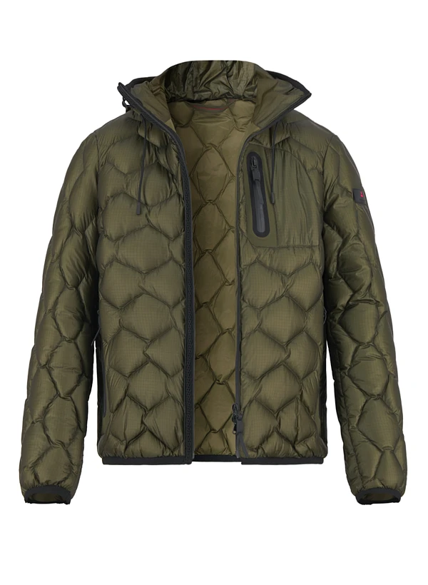 Die grüne Ripstop-Oberfläche verleiht der Weiwei-Jacke eine technische Optik, während getapte Reißverschlüsse für zusätzlichen Wetterschutz sorgen. Das leichte Polyamid-Gewebe fühlt sich glatt an und die hochwertige 80/20-Daunenfüllung hält Sie zuverlässig warm, ohne aufzutragen. Der Zwei-Wege-Reißverschluss und die verstellbare Kapuze machen die Jacke zum vielseitigen Begleiter für urbane Winterabenteuer. Praktische Details wie die Brusttasche mit Reißverschluss und elastische Ärmelbündchen unterstreichen die durchdachte Funktionalität.