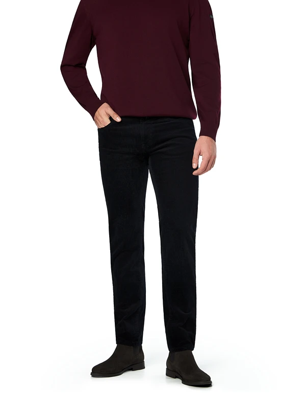 Die tiefe Nachtblau-Nuance verleiht dem klassischen Cord eine moderne, elegante Note. Das weiche Baumwollgewebe mit feiner Rippenstruktur und einem Hauch Elasthan sorgt für angenehmen Tragekomfort und perfekte Passform den ganzen Tag. Der Regular Fit im bewährten Five-Pocket-Style macht diese Hose zum vielseitigen Begleiter für Business-Casual und gehobene Freizeitanlässe. Die mittlere Cordbreite unterstreicht den zeitgemäßen Look, während die Fußweite von 34 cm eine schlanke Silhouette zeichnet.