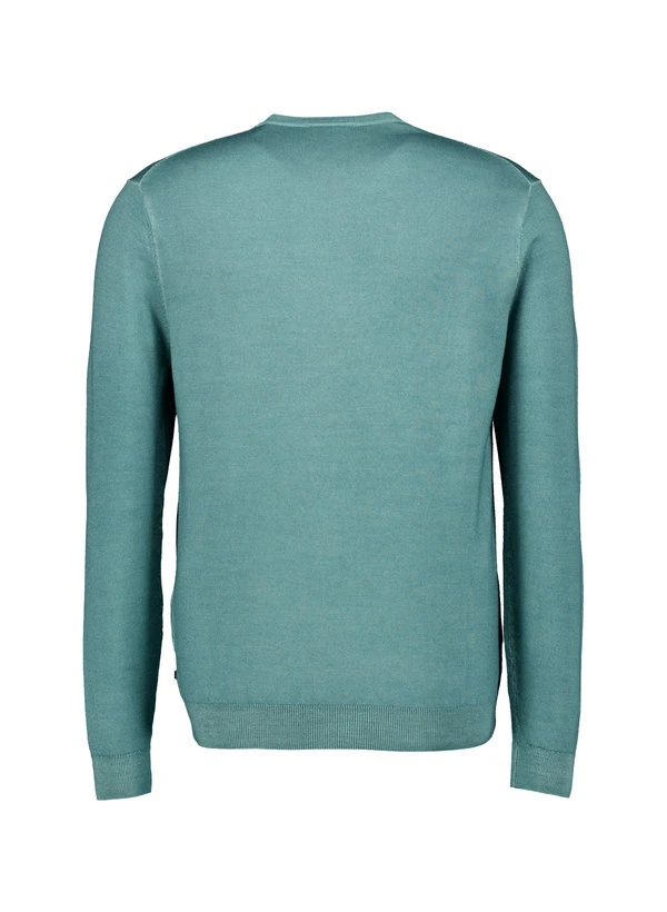 Seegrüner Merinowolle-Pullover mit raffinierten Farbeffekten