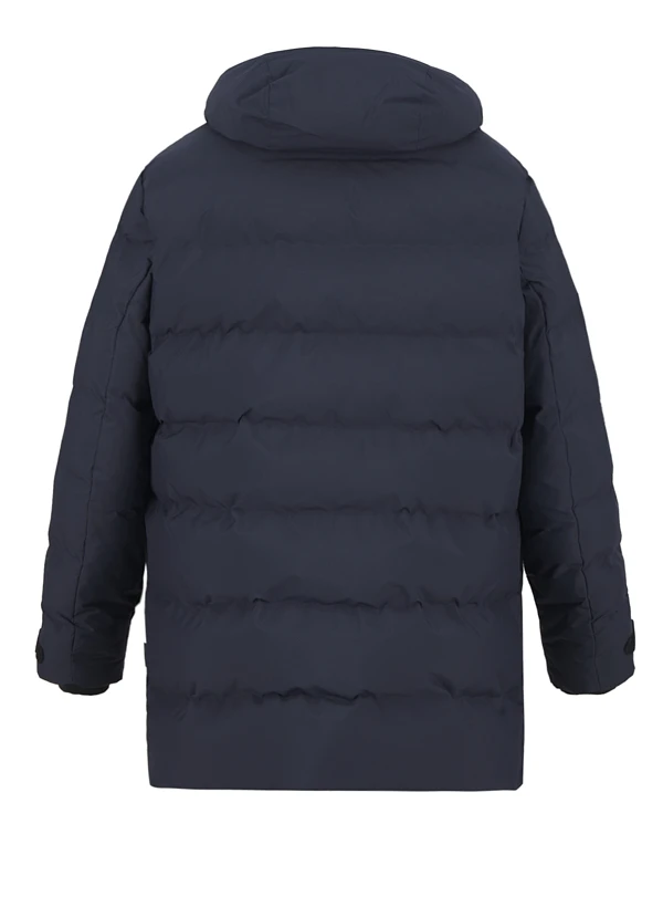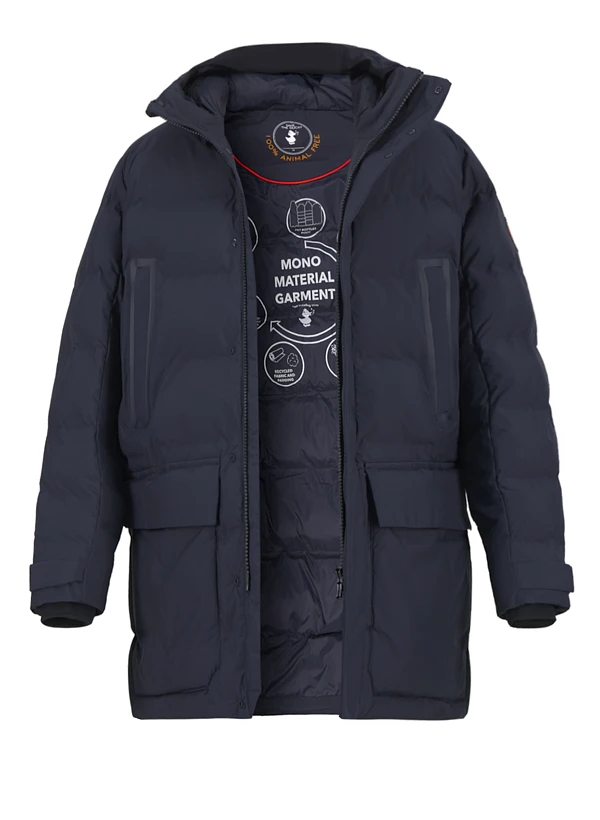Blauschwarzer Steppmantel mit recyceltem High-Tech-Material
