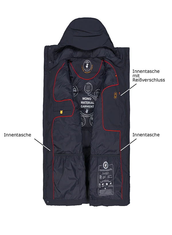 Das tiefe Blauschwarz verleiht diesem Steppmantel urbane Eleganz, während die markante Steppung für moderne Struktur sorgt. Das recycelte PLUMTECH®-Material speichert Wärme optimal und bleibt dabei atmungsaktiv – ein technischer Vorteil, der Sie bei wechselhaften Temperaturen zuverlässig schützt. Der durchdachte Mix aus Zwei-Wege-Reißverschluss und verdeckten Druckknöpfen macht den Mantel zum flexiblen Begleiter für Stadt und Natur. Praktische Details wie die Brusttaschen mit Reißverschluss und die großformatigen Pattentaschen bieten viel Stauraum, während die angeschnittene Kapuze zusätzlichen Wetterschutz gewährt.