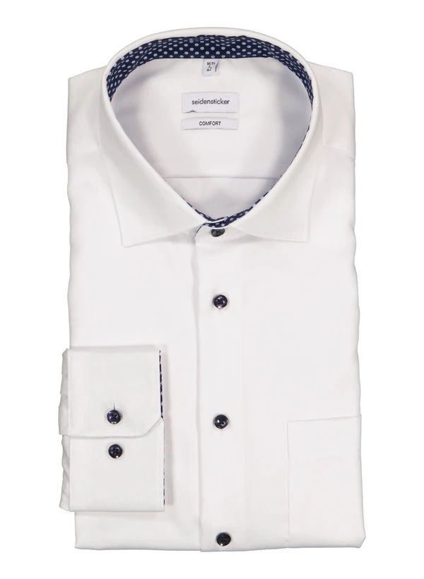 Die besonders dichte Twill-Webung macht dieses weiße Hemd vollkommen blickdicht – ideal, wenn persönliche Details wie Tattoos zunächst verborgen bleiben sollen. Das reine Baumwollgewebe fühlt sich griffig an, bleibt dabei atmungsaktiv und behält seine Form auch nach häufigem Tragen. Der klassische Kentkragen und die italienische Knopfleiste verleihen dem Comfort Fit eine zeitlose Business-Ausstrahlung. Die weitenverstellbare Sportmanschette und die praktische Brusttasche runden die durchdachte Ausstattung ab.