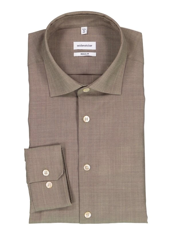 Das warme Nougat verleiht diesem Hemd eine dezente Eleganz, die sich mühelos in herbstliche Farbwelten einfügt. Die Mischung aus Polyester und Wolle sorgt für angenehme Wärme ohne aufzutragen – ideal für kühlere Tage im Büro oder bei Outdoor-Terminen. Mit seinem klassischen Kentkragen und der italienischen Knopfleiste verbindet es traditionelle Hemdenkultur mit modernem Tragekomfort. Die weitenverstellbare Sportmanschette ermöglicht eine individuelle Passform am Handgelenk.