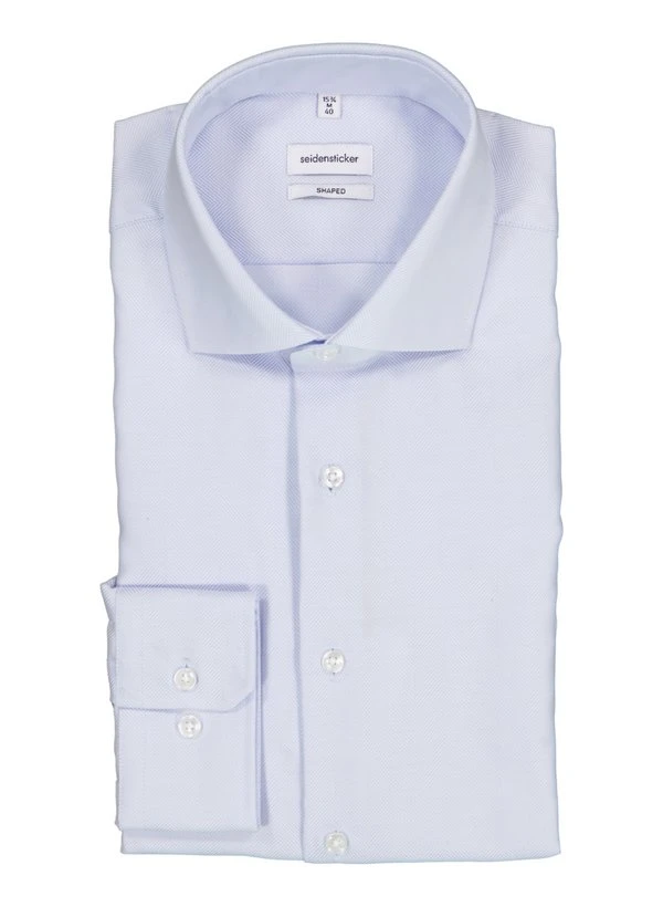 Das hellblaue Strukturgewebe verleiht diesem Hemd eine dezente Tiefe, die sowohl im Büro als auch nach Feierabend überzeugt. Die reine Baumwolle fühlt sich angenehm auf der Haut an und bleibt dank bügelfreier Ausrüstung auch nach der Wäsche glatt. Mit seinem Shaped Fit schmiegt sich das Hemd körpernah an, ohne einzuengen – ideal für einen modernen Business-Look. Die italienische Knopfleiste und der klassische Kentkragen unterstreichen die elegante Linie, während die weitenverstellbare Sportmanschette für optimalen Sitz am Handgelenk sorgt.