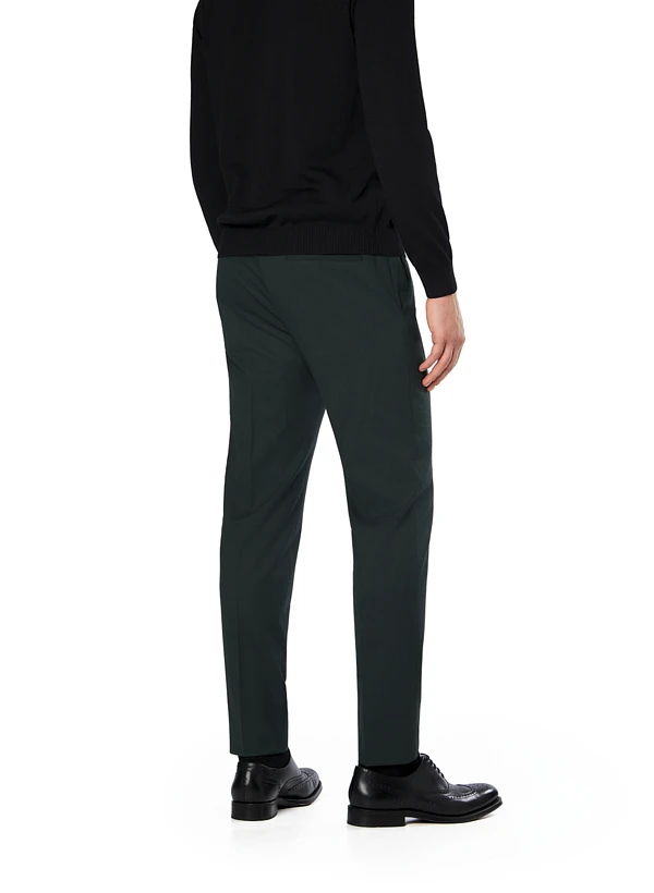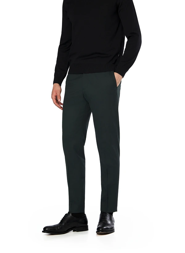 Die dunkelgrüne Melange verleiht dieser Hose eine lebendige Tiefe, die sowohl im Büro als auch am Abend überzeugt. Der Woll-Stretch-Mix aus Polyester, Wolle, Viskose und Elasthan bietet höchsten Tragekomfort – die Wolle reguliert die Temperatur, während der Elasthan-Anteil für perfekte Bewegungsfreiheit sorgt. Mit ihrem Slim Fit und den klassischen Bügelfalten wirkt die Hose modern und zugleich zeitlos elegant. Der verlängerte Bund, die seitlichen Einschubtaschen sowie die praktische Münztasche unterstreichen die durchdachte Funktionalität.