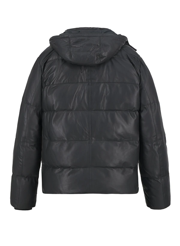 Schwarzes Lammnappa mit abnehmbarer Kapuze