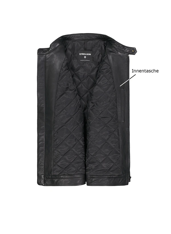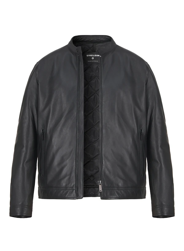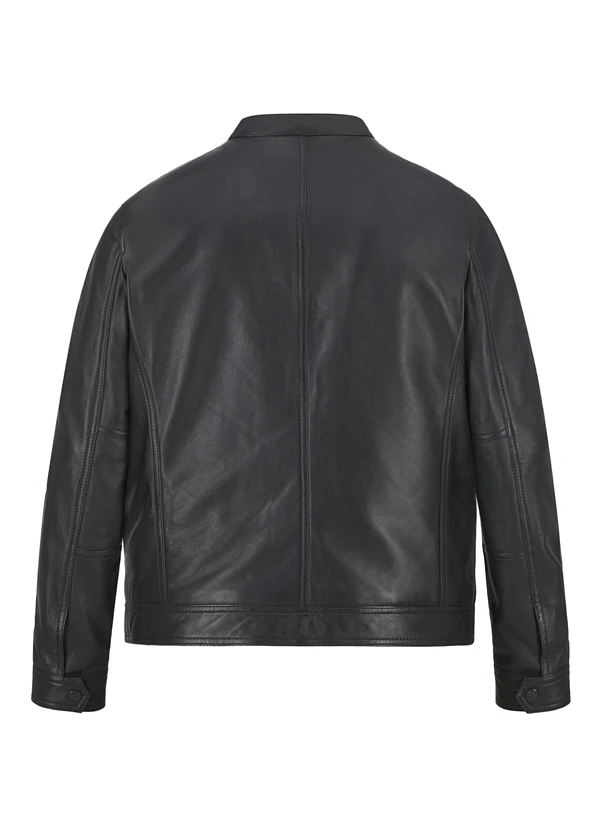 Die tiefschwarze Lammleder-Oberfläche zeigt sich in mattem Glanz, während der schlanke Schnitt eine moderne Silhouette zeichnet. Das weiche Leder schmiegt sich angenehm an den Körper und entwickelt mit der Zeit eine individuelle Patina – die Wattierung sorgt für wohlige Wärme an kühleren Tagen. Die Jacke verbindet urbane Eleganz mit praktischen Details wie dem durchgehenden Reißverschluss und den seitlichen Zip-Taschen. Verstellbare Ärmelmanschetten und der Stehkragen mit Knopflasche unterstreichen die durchdachte Funktionalität.
