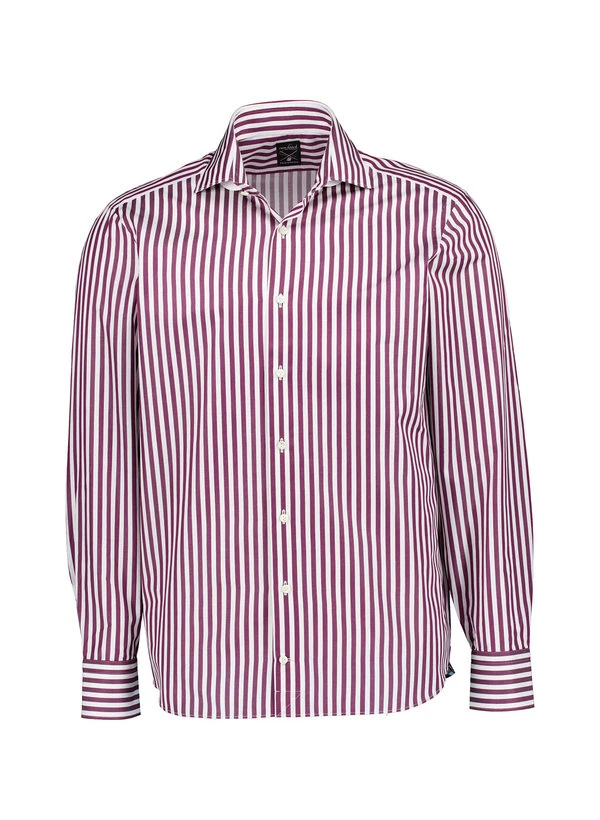 Das lila-weiße Streifenmuster dieses Hemdes verleiht ihm eine elegante und dynamische Optik. Gefertigt aus 100% Baumwolle, bietet der Twill-Stoff einen angenehm weichen Griff und sorgt für optimalen Tragekomfort. Der Tailor Fit Schnitt unterstreicht die maskuline Silhouette und eignet sich sowohl für formelle Anlässe als auch für den gehobenen Alltag. Italienische Knopfleiste mit edlen Perlmuttknöpfen und ein klassischer Kentkragen runden das Design stilvoll ab.