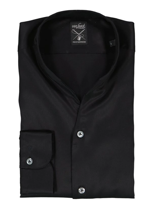 Der tiefschwarze Twill schimmert dezent und verleiht diesem Hemd eine elegante Ausstrahlung für den urbanen Alltag. Die hochwertige Baumwolle fühlt sich geschmeidig an und profitiert von der „Perfect Look“-Verarbeitung, die für dauerhaft glatte Optik ohne aufwendiges Bügeln sorgt – die Körperwärme reicht aus, um kleine Knitterfalten zu glätten. Der markante Stehkragen mit V-Ausschnitt bringt moderne Lässigkeit ins Business-Outfit und funktioniert ebenso gut zur dunklen Jeans. Die italienische Knopfleiste mit echten Perlmuttknöpfen und die Sportmanschette unterstreichen den zeitgemäßen Schnitt im Slim Fit.